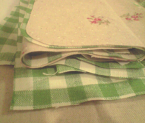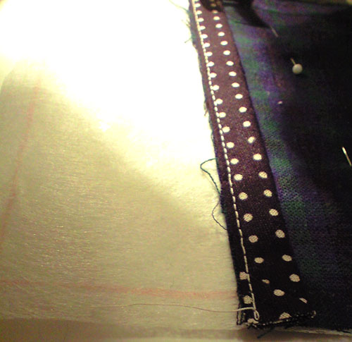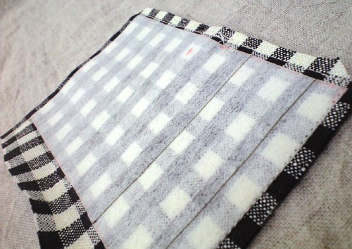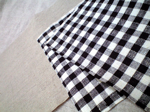 チェックのリネンは 中表にあわせて 接着芯を。